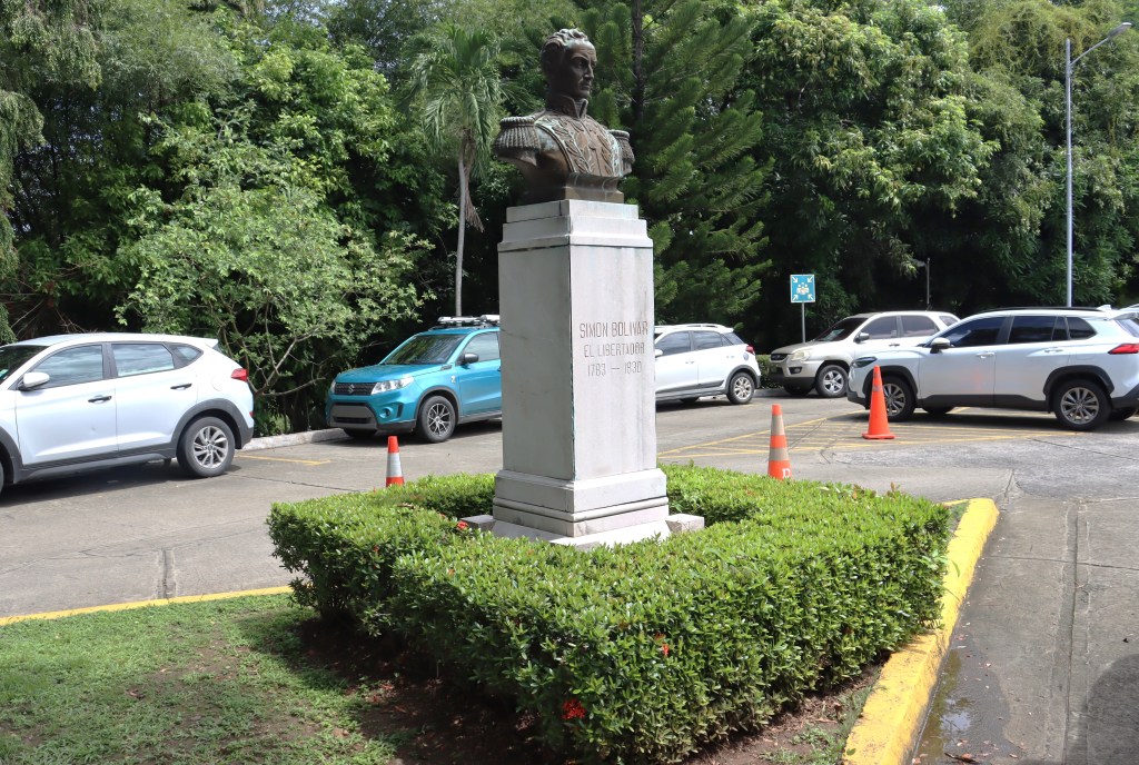 En el estacionamiento ubicado frente al edificio de la Colina, en el campus Octavio Méndez Pereira de la Universidad de Panamá, se eleva un busto con la figura de Simón José Antonio de la Santísima Trinidad Bolívar Ponte y Palacios Blanco, mejor conocido en la historia como Simón Bolívar. Una majestuosa obra trabajada en la técnica del bronce, por las manos de quien en vida fue el escultor italiano Julio Roversi, radicado en Venezuela; país en el que dejó marcada su huella con majestuosas obras como el Cenotafio de Francisco de Miranda y José Gregorio Monagas, hoy patrimonio de ese país hermano.