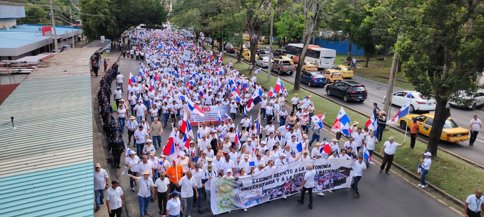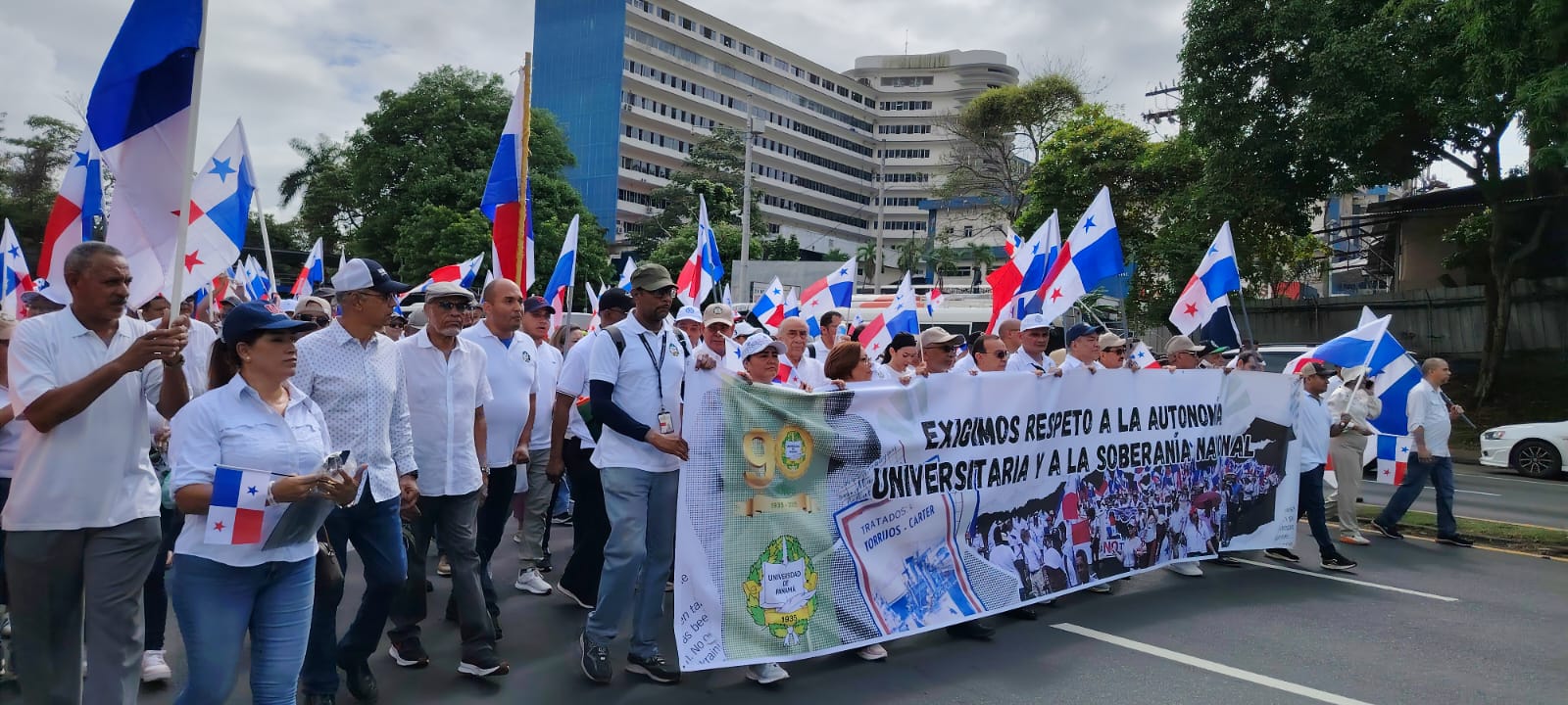 La movilización de estudiantes, profesores y administrativos inició en los estacionamientos de la Facultad de Humanidades y concluyó en la rotonda del Monumento a los Mártires del 9 de Enero, donde el rector de la Universidad de Panamá, Dr. Eduardo Flores Castro, explicó el papel protagónico de la institución a través de la historia como símbolo de lucha y conciencia social.